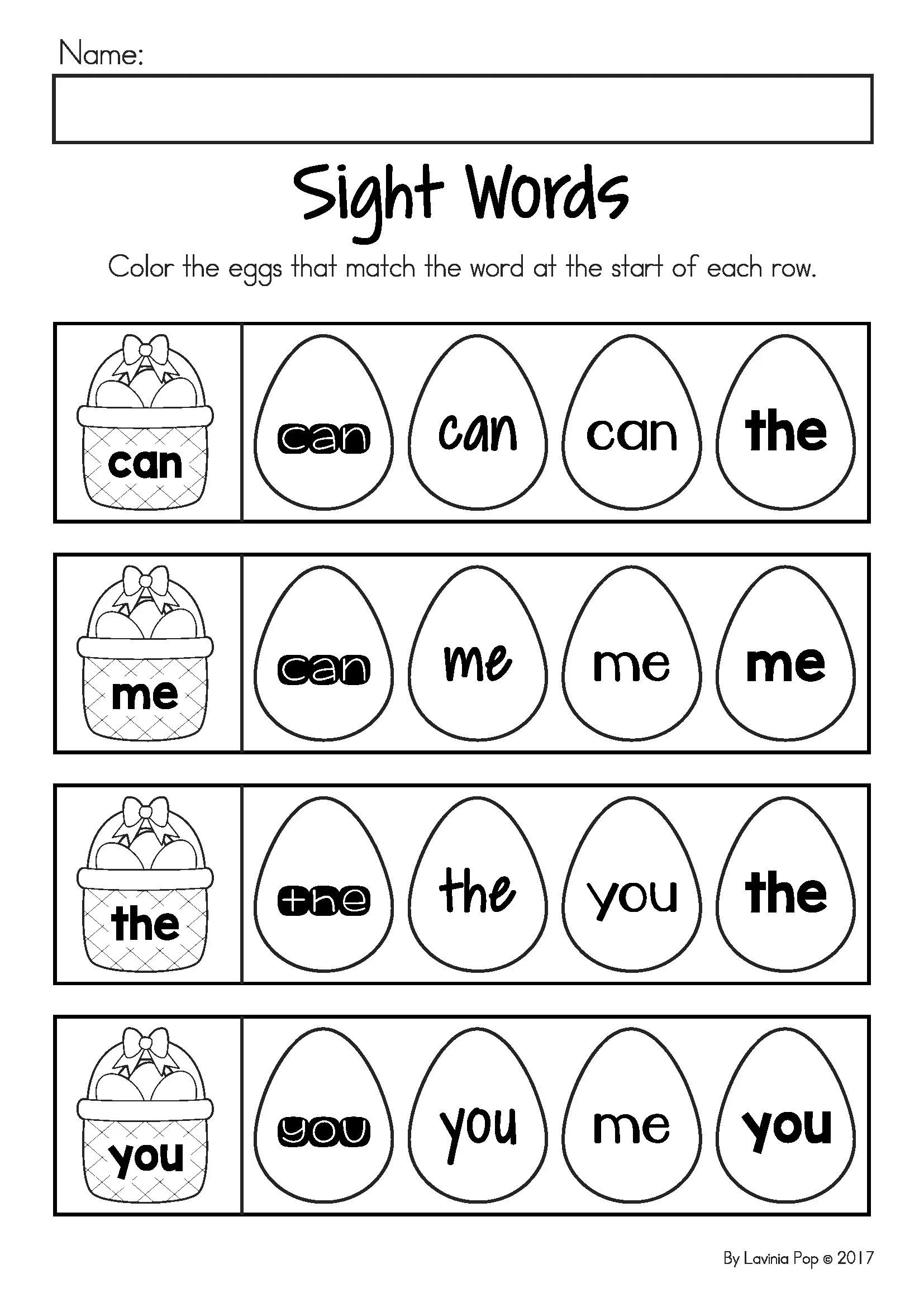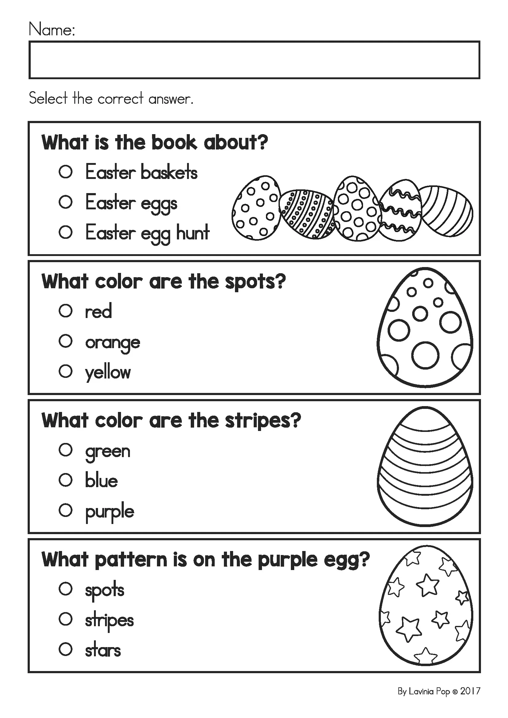 - Emergent reader “Easter Eggs” (color and black and white)