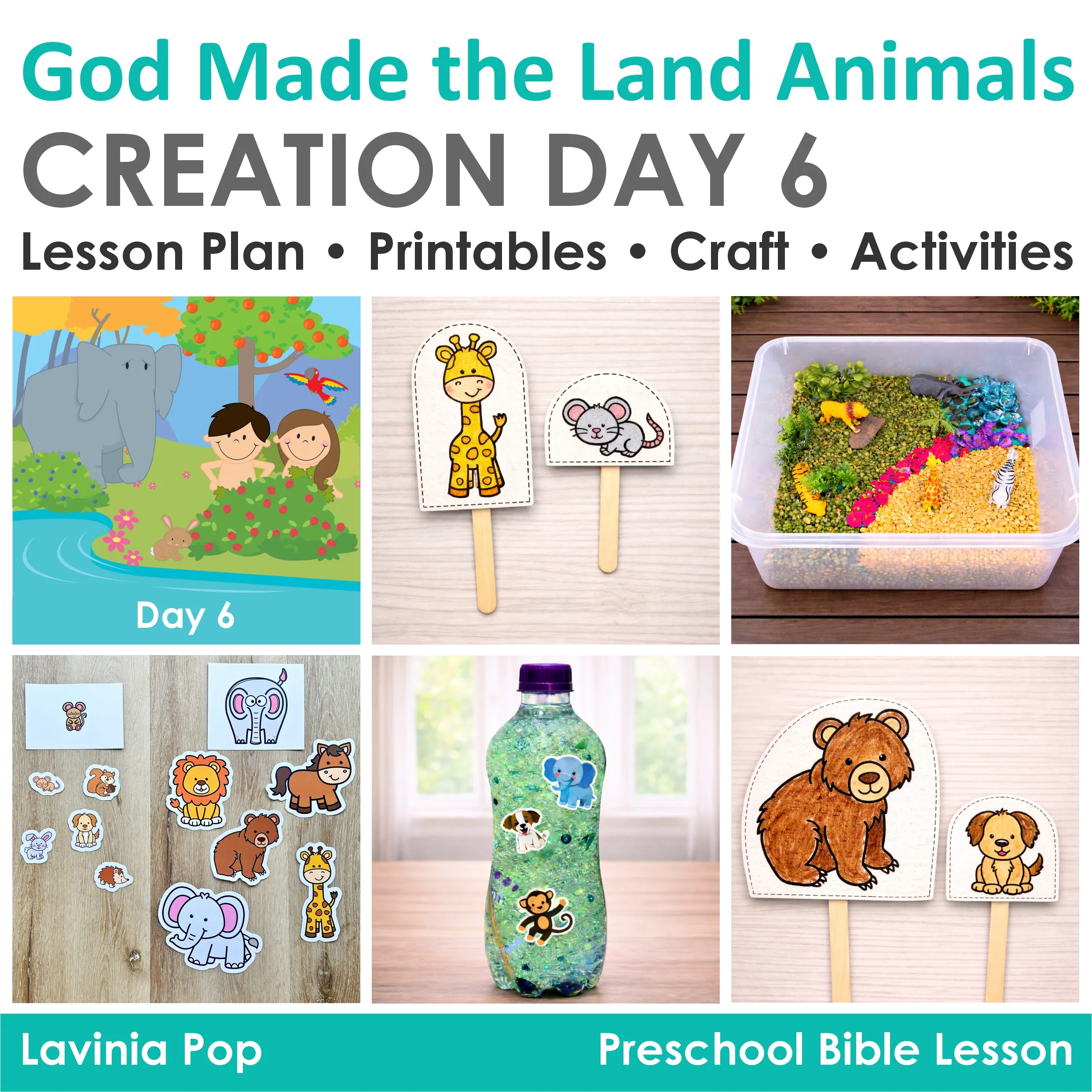 This Creation Day 6 Preschool Bible Lesson God Made the Land Animals works well for Sunday School, church programs, and faith based early learning settings. Overall, each activity reinforces the same Bible truth: God made the land animals on Day 6, and everything God made was good.
